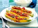 Season with pepper and sprinkle with grated Gouda. Spread 100 g butter in pieces on top. Bake in a hot oven for about 10 minutes.