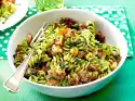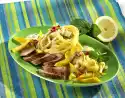 Place chicken breasts on top. Season with star anise and tea. Close the bag and cook in the preheated oven (electric cooker: 175 °C/ convection oven: 150 °C/ gas: level 2) for about 30 minutes. Cut open the top of the bag (be careful!!! hot steam!!!), remove star anise and cook for another 20 minutes. Arrange on plates and garnish with mint