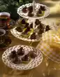 Bring fat, cream and sugar to the boil in a saucepan while stirring. Chop the cherries. Add flaked almonds, pistachios and cherries to the fat-sugar mixture and simmer for about 2 minutes at low heat, stirring occasionally. Stir in flour. Let rest for about 15 minutes. Line two baking trays with baking paper. Using a teaspoon, spread the Florentine mixture as a heap at a large distance on the baking trays.