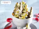 Bake the cake at the same temperature for about 35 minutes. Place on a cake rack. Carefully remove the cake from the edge with a sharp knife, remove the edge of the mould and let the cake cool down. Dust with icing sugar. Whipped cream tastes good with it.