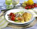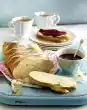 Mix the sour cream and the remaining sugar with the whisk of the hand mixer. Add 2 cups of cream while stirring. Then pour in the sauce powder and beat until stiff. Cut the cake twice horizontally. Spread the raspberry jelly on the lower cake base and smooth it down. Chill for about 15 minutes. Spread about 1/4 of the vanilla cream on the raspberry jelly and smooth it down. Place the second base on top and spread another quarter of the cream on top. Place the third cake layer on top and spread the rest of the cream all around. Roast the flaked almonds in a pan without fat until golden brown and sprinkle all around the wreath. Chill for about 1 hour. Whip remaining cream until stiff, fill into a piping bag and spray 6 tuffs onto the wreath. Decorate with raspberries and mint to taste. Results in about 20 pieces
