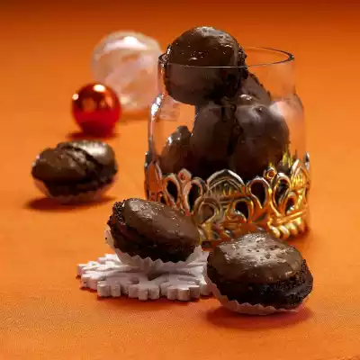aPreparation: Mix icing sugar, flour and cocoa, sieve into a bowl. Add almonds and mix. Beat egg whites and salt until stiff. Fold in almond mixture in 2 portions. Pour the chocolate mixture into a large piping bag with a perforated nozzle (8 mm Ø).
