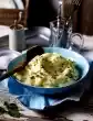 2 Wash and dry the chives, and chop half of them. In a bowl, whisk the ricotta with the cream, the juice of half a lemon and the chopped chives. Season with salt and pepper. Divide this preparation among the half potatoes.