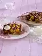 Cut the flesh into slices. Wash and quarter pear and apple, cut out core. Cut the fruit into fine slices. Arrange fruit on 4 plates. Pour marinade evenly over the fruit. Serve with a dollop of cream and decorated with lemon and mint to taste