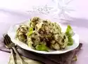Peel and finely chop the onion. Clean and quarter the mushrooms. Steam both in hot fat. Let cool off
