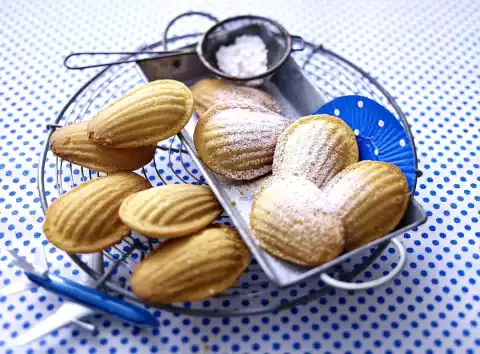 Clean the madeleine sheet metal, grease the recesses again. Pour in the rest of the dough as well, bake and remove from the pan. Dust the madeleines with icing sugar as desired. Tastes best fresh.