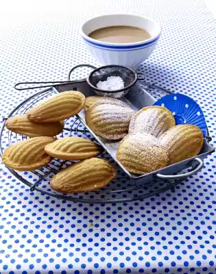 Pour into the greased wells and bake in a preheated oven (electric range: 200 °C/ convection oven: 175 °C/ gas: level 3) for 10-12 minutes. Remove from the oven, allow to cool for approx. 5 minutes, remove from the wells. Clean the tray, grease the cavities again. Process the remaining dough as described above. Dust the madeleines with icing sugar as desired. Tastes best fresh