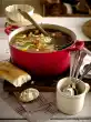 Place 1 slice of baguette on each and pour some of the soup over the slices. Sprinkle with cheese and bake in the oven for 5-7 minutes. Sprinkle the soup with parsley.