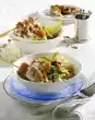 Clean, wash and drain the salad and cut into strips. Peel and roughly dice the onion. Wash and quarter the tomatoes. Wash, clean and chop the peppers. Clean, wash and roughly grate the carrots.