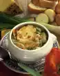 Peel and finely chop the onion. Steam in hot fat in a pot until translucent. Add peas. Deglaze with 600 ml water. Bring to the boil, stir in broth and simmer covered for about 15 minutes (frozen peas 6-8 minutes)