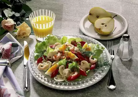 Mix the prepared ingredients and prawns with the marinade and serve.