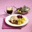 Add stock and thyme. Cook everything for about 15 minutes. Season soup. Heat the dumplings in it
