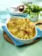 Wash and peel the asparagus and cut off the woody ends. Cook the asparagus in boiling salted water with 1 teaspoon sugar for about 12 minutes. Drain, rinse with cold water and let drain. Spread the asparagus in a casserole dish. Wash parsley, shake dry. Pluck off leaves and chop finely. Mix parsley with the sauce, except for a little bit for sprinkling. Flavour the sauce again and spread on the asparagus. Crumble the feta and sprinkle over it. Bake in a preheated oven (electric cooker: 200 °C/ convection oven: 175 °C/ gas: see manufacturer) for 12-15 minutes