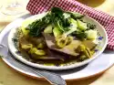 In the meantime, peel the potatoes, wash them thoroughly and cook them in boiling salted water for about 25 minutes. Peel, wash and cut the kohlrabi into slices. Wash and quarter apples, cut out the core. Cut quarters into slices and sprinkle with lemon juice