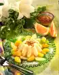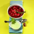 Drain the finished broccoli florets on kitchen paper and keep warm. Repeat the process with meat cubes. Season yoghurt with salt, pepper, paprika and lemon juice. Arrange rice, broccoli florets, chicken nuggets and dip.
