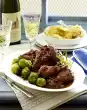 Heat the oil in a frying pan. Fry the meat for 3-4 minutes while turning. Season with salt and pepper and remove. Add potatoes to the frying fat and fry for 7-8 minutes while turning, season with salt and pepper, add Brussels sprouts, fry for another 2-3 minutes.