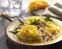 Add the onions, ginger and Brussels sprouts and continue to fry for about 5 minutes, stirring continuously. Season with salt, sambal oelek, cinnamon and nutmeg. Puree tastes good with it.