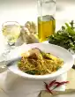 Clean, wash and cover the Brussels sprouts and cook in boiling salted water for about 15 minutes. Peel and halve the onions and cut into fine strips. Peel ginger and dice very finely.