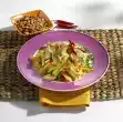 Peel and wash the carrots and cut them into long, wide strips with an asparagus peeler. Remove the outer white cabbage leaves. Cut out the stalk. Cut cabbage into wide strips. Peel and finely chop the onion.