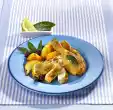 Deglaze with broth and milk while stirring, bring to the boil. Drain the Brussels sprouts and fold into the sauce. Cut the fillet open and sprinkle with coloured pepper. Arrange on a plate with Brussels sprout curry and potatoes.