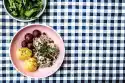 For the salad, wash the potatoes and cook in water for about 20 minutes. Peel and finely chop the onion. Heat 2 tablespoons of oil in a frying pan. Fry the onion until transparent. Deglaze with 150 ml water and vinegar. Bring to the boil, stir in broth and simmer for about 2 minutes. Drain the potatoes, let them cool down briefly, peel them and cut them into slices directly into the hot broth. Let stand for at least 1 hour.