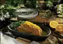 Turn over in between and finally make a cooking test with a wooden skewer. (When the meat juice is clear, the poultry is cooked). Place the finished pieces in the oven warm. Clean, wash and cut the watercress into bite-sized pieces.
