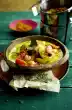 Dice gherkin and egg as well. Wash the herbs. Cut chives into small rolls, chop dill finely. Mix mayonnaise and mustard. Mix egg, onion, cucumber and herbs. Season with salt and pepper.