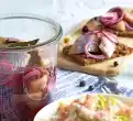 Heat 1 tablespoon of oil in the frying fat. Fry the bell pepper, onion and garlic for about 5 minutes. Fry the marjoram briefly. Add olives and season to taste. Place the fish pieces on the vegetables and heat covered briefly. Serve with farmhouse bread or mashed potatoes