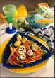 Pour over the potatoes, let it stand for 10 minutes. Fold in cucumber and tomatoes. Wash the fish, cut into portions. Sprinkle with 2 teaspoons of lemon juice and salt. Beat the egg. Turn fish first in flour, then in the egg. Fry in hot oil on both sides for 4-5 minutes. Season sour cream with remaining lemon juice, salt and pepper. Wash the chives, cut them into small rolls and sprinkle them on top.