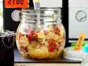 Stir 200 ml cold water and 100 g flour until smooth. Season with salt, paprika and cayenne pepper. Dust the onions with flour first (sift over them), then dip them into the dough one after the other (it is best to turn the onion in the dough with your hands!).