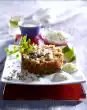 Place bread on a baking tray and roast in a preheated oven (electric cooker: 175 °C/ convection oven: 150 °C/ gas: level 2) for 8-10 minutes until golden brown. Peel garlic and dice finely. Wash the parsley, put some aside for garnishing, cut the rest into fine strips