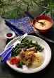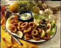Wash the fish fillets and dab them dry. Fry in hot fat on both sides for 3-5 minutes. Season with salt and pepper. Peel and finely dice onions. Add to the fish just before the end of the cooking time and steam. Wash the herbs, dab dry, chop and sprinkle over the fish