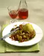 Meanwhile wash the parsley and dab dry. Put something aside for garnishing. Pluck the leaves from the stalks and chop them roughly. Add parsley and potatoes to the mushrooms and season with salt and pepper.