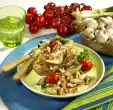 Heat 2 more tablespoons of oil. Fry half of the potatoes in it until crispy. Season with salt and pepper. Fold in half of the prepared paprika mixture and fry briefly more. Prepare the second half in the same way, either afterwards or at the same time.