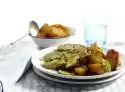 Arrange the fried potatoes with the ham in aspic and the chives sauce on plates. Garnish with radishes. Sprinkle with the remaining chives.
