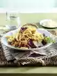 Cook the pasta in boiling salted water according to the instructions on the packet. Heat the oil in a frying pan. Fry the meat for 3-4 minutes while turning, season with salt and pepper, remove and keep warm.