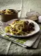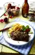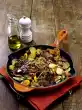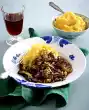 Roughly mix in the meat and pumpkin, arrange on plates.