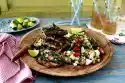Coarsely chop the green pepper. Dice the apricots. Mix both with ajvar and ketchup. Season to taste