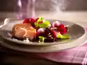For the salad, clean, wash and cut the tomatoes into eighths. Peel the onion and cut into slices. Peel carrots, grate roughly. Clean, wash and cut romaine lettuce into fine strips. Wash rocket, cut coarsely.