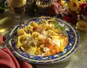 Season to taste with salt, pepper and nutmeg. In the meantime whisk eggs and milk. Season with salt. Pour egg milk over the noodles and let it set while stirring. Arrange on plates.