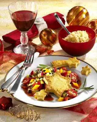 Fry the onion and garlic in 1 tablespoon of hot oil. Add the diced vegetables and steam. Stir in strained tomatoes, 1/4 l water and stock. Bring everything to the boil, season and simmer covered for about 8 minutes