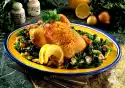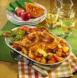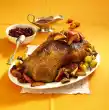 Remove from oven, keep cabbage warm. Cut the duck into portions and arrange on a plate with the cabbage. Garnish with marjoram.