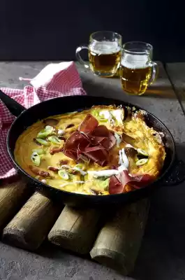 Switch on the oven grill (240 ° degrees). Cook the frittata under the grill on the middle shelf for 5-7 minutes. Carefully remove the frittata, spread the Bündnerfleisch on top and sprinkle with the remaining spring onions.