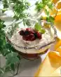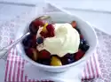 Fold in the cream. Fold the liquid chocolate into the mascarpone cream and immediately pour into the glasses on top of the fruit salad.