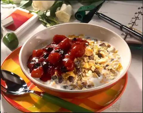 Fruit muesli with groats and milk