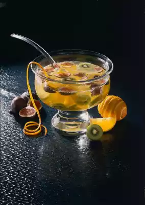 Peel oranges so that the white skin is completely removed. Cut out fillets along the inner skins and put them in a bowl. Add white wine. Wash figs, peel kiwi. Cut figs into thin slices, slice kiwi and add to punch. Fill up with cold sparkling wine just before serving