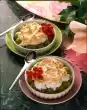 Peel the grapefruit, removing all the white skin. Cut out fillets between the parting skins. Wash, quarter and core the apples. Cut apple quarters into fine slices. Mix the prepared ingredients and sprinkle with the marinade.