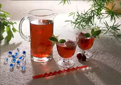 Cool the drink well. Spread the liquid over 4 glasses. Add one scoop of ice cream to each glass. Garnish with mint