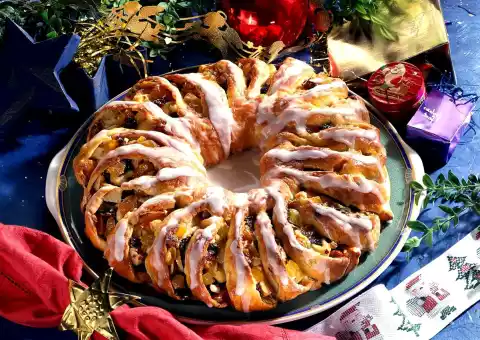 Mix icing sugar and lemon juice and decorate the wreath with it. Results in approx. 24 slices.