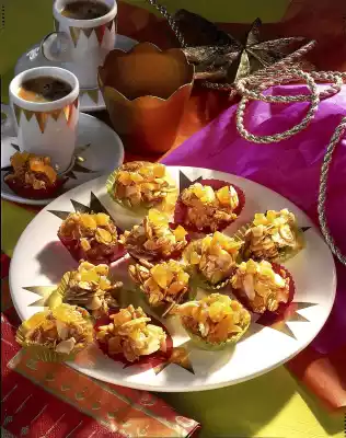 Deglaze with orange juice and heat until all the caramel has dissolved. Add the apricot mixture and stir quickly. Remove from the heat and immediately place about 30 small heaps on the oiled aluminium foil with 2 teaspoons. Leave to cool and place in cuffs. Results in approx. 30 pieces